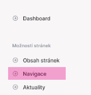 V hlavním levém menu v sekci „Možnosti stránek“ rozkliknete „Navigace“.