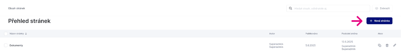 Uvidíte již existující podstránky, které můžete následně editovat nebo rozkliknutím tmavě modré ikonky