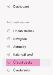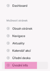 Vámi zvolená obsahová stránka se objeví dole jako jedna z hlavních kategorií menu (ukázka spolky).