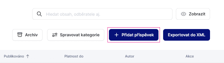 Nový příspěvek přidáme pomocí tmavě modré ikonky „Přidat příspěvek“ v pravém v pravém horním rohu.